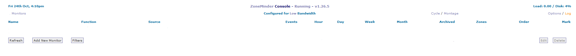 Si durante la instalación ha ido todo como la seda, ya vamos a poder entrar en el servidor de Zoneminderhttp://<IPservidor>/zm y nos deberemos encontrar con una interfaz como esta:
